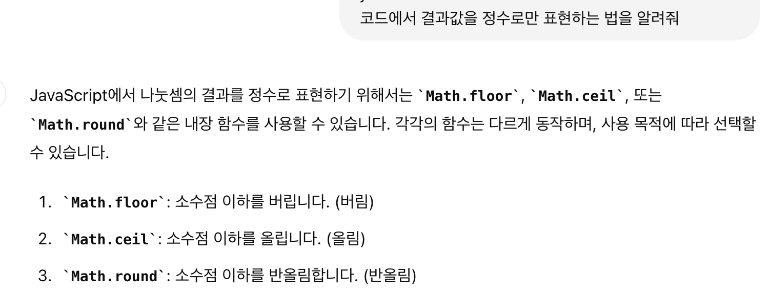 3. 결괏값을 정수로 나오게 하는 방법을 챗지피티한테 물어봤다.